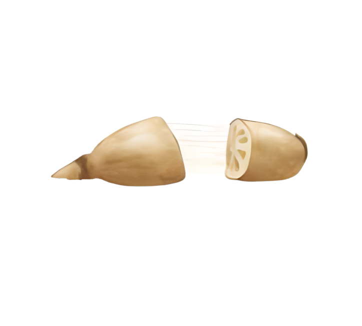 A lotus root is cut into two pieces, and